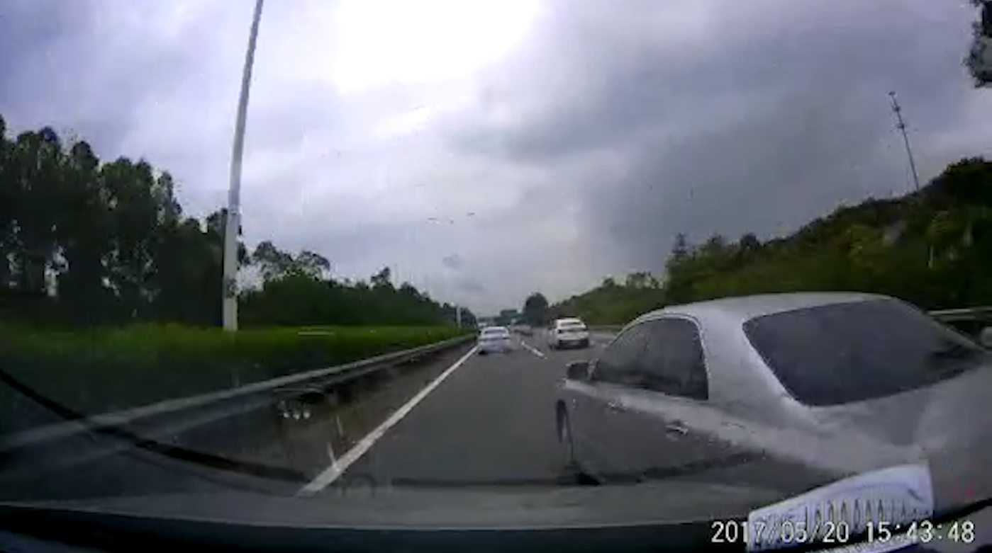 5月20日,潮莞高速上一辆丰田皇冠车轿车因在潮莞高速想插队,被前面一辆排队的沃尔沃轿车挡住,插队未遂。根据沃尔沃轿车行车记录仪拍摄的画面,通过收费站后,皇冠轿车先后至少五次恶意对沃尔沃采取别车、踩刹车、左右变道等动作干扰其正常行驶,最后,撞击沃尔沃轿车后逃逸。沃尔沃车主表示,事发后他把车行驶到安全地带后立刻报警,并到交警部门提供了行车记录仪拍摄的证据。之后,皇冠车主曾尝试要求与他私了,并承诺赔偿损失,但被拒绝了。