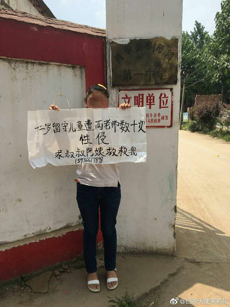 7月4日下午,一个ID名为“白衣天使茉莉花”的网友在微博上曝出消息,称河南周口市下属西华县的奉母镇第一中学,有两名老师强奸12岁女生何某多次。